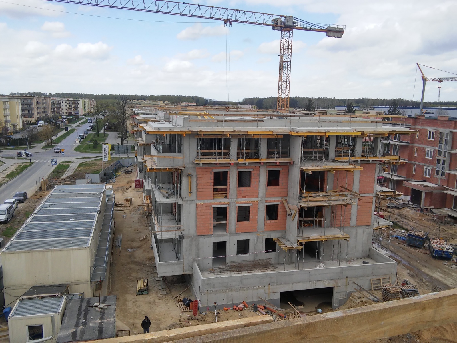 Z przyjemnością informujemy, iż w związku z zakończeniem konstrukcji wszystkich budynków realizowanych w ramach II etapu inwestycji, na dachu budynku B1 zawieszona została wiecha.